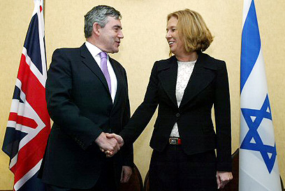 Brown with FM Livni earlier on Monday (Photo: AFP)