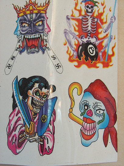 Children who bought the raspberry-flavored sour stick candies received tattoos inside, some of which were imprinted with swastikas and skulls.