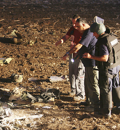 Examining the debris (Photo: Hagai Aharon)