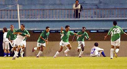 Members of Palestinian soccer team