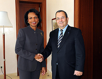 Defense minister meets US secretary of state, says Iran still pursuing nuclear weapons while deceiving world powers; thanks Rice for being instrumental in Mideast peace process