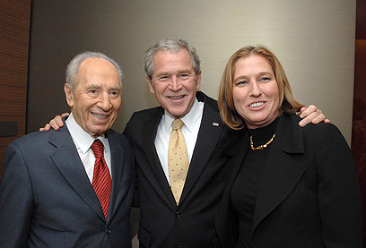 Last goodbye. Peres with US President George W. Bush and Foreign Minister Tzipi Livni (Photo: Moshe Millner, GPO)