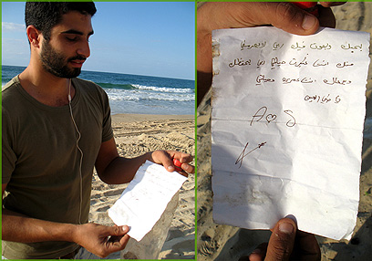 The letter's content makes it impossible to ascertain whether it arrived from the Gaza Strip or from an Arab state, but based on past experience it likely originated in Gaza. Ashkelon residents are used to large quantities of waste from Gaza making their way to their beaches, but this is the first time such letter was found.
