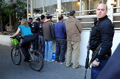 Workers detained on Tel Aviv's Rothschild Blvd. (Photo: Yaron Brener)