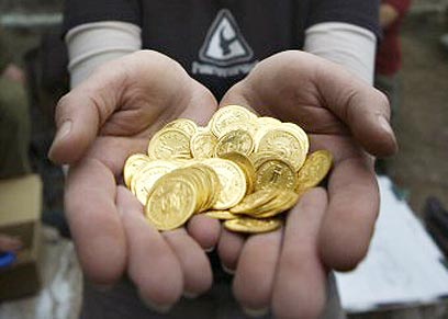 "It's very, very exciting," she said, cupping hands full of bright yellow coins that looked in mint condition.