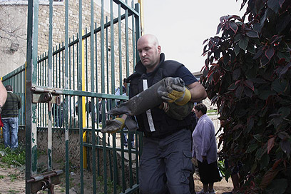 Grad that landed near Ashkelon school (Photo: Gil Yohanan)