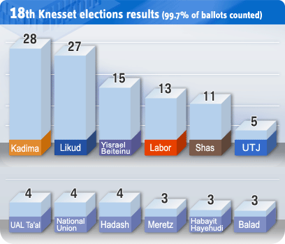 No clear winner – Kadima 28, Likud 27
