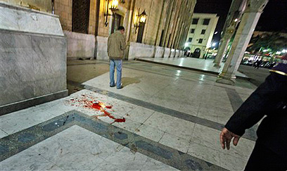 Blood-stained entrance to mosque after attack (Photo: AP)