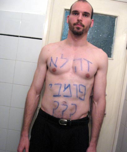 Last year's protest. Yerushalmi's stomach reads: 'This isn't public???'