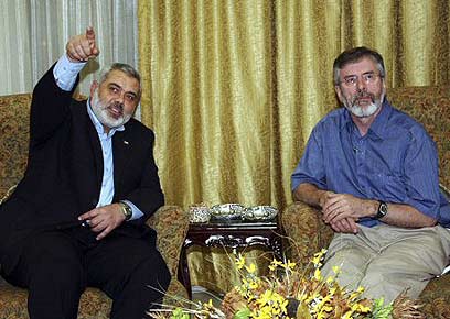 Irish Republican politician Gerry Adams meets Haniyeh in Strip to discuss relations with Israel
