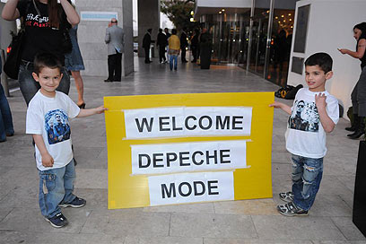 The band members were met at the entrance to the hotel by many fans, some holding signs with greetings in honor of their arrival in Israel and wearing Depeche Mode T-shirts.