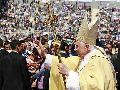 Pope Benedict XVI celebrated mass outside of Jerusalem's Old City on Tuesday after two days in Israel spent navigating the currents of the region's conflicts and appealing for reconciliation.