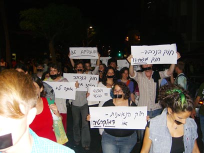 Some 40 concerned citizens marched in Tel Aviv on Wednesday night in protest of the proposed Nakba and loyalty laws.