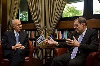 European Union foreign policy chief Javier Solana met Thursday morning with Shimon Peres at the president's Jerusalem residence. Peres, who was expected to meet with Prime Minister Benjamin Netanyahu later in the day, presented his own creative solution for the Israeli-Palestinian conflict.