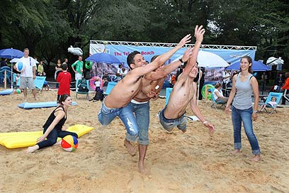 Twenty-six-year-old American Fred Bodner danced to the Israeli tunes and said, "I visited Israel once, and I fell in love with Tel Aviv. I want to go back and visit. The artificial beach they set up here reminds me of the amazing beach over there."