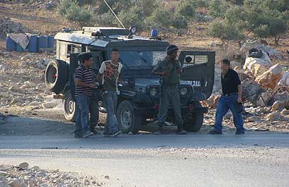 The Border Guard and the Palestinians on Thursday. (Photo: Zecharia Sida)