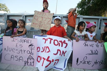 The children who gathered in the area carried signs reading, "Cancel deportation, don't postpone it", "Israeli child – Israeli citizenship".