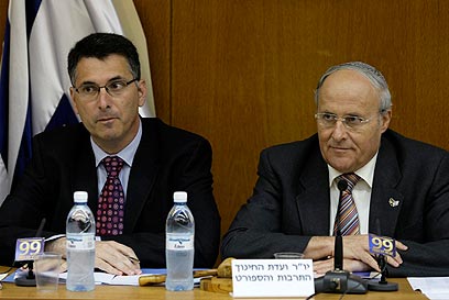 Sa'ar (L) and Education Committe chairman Zevulun Orlev on Wednesday's meeting (Photo: Dudi Vaaknin)
