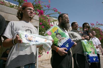 Activists with diapers outside tent (Photo: Gil Yohanan)