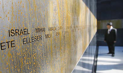 Monument in memory of 300,000 Jews, Gypsies killed during Holocaust unveiled in Romania Thursday. President Basescu says it's nations duty to 'recognize genocide during World War II'