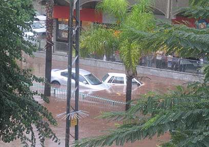 The floods also reached Petah Tikva, with a vehicle carrying a number of passengers getting stuck in a large puddle the city's industrial zone. Rescue teams were called to the scene.