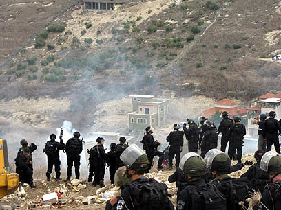 Around 10 am, hundreds of police officers arrived at the village in order to assist Interior Ministry workers in the demolition of a house, according to a court order.