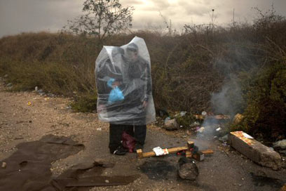 The checkpoint provides cover for those waiting to cross it, but its little shed can shelter about 100 people at the most, leaving the rest exposed to rain and cold winds.