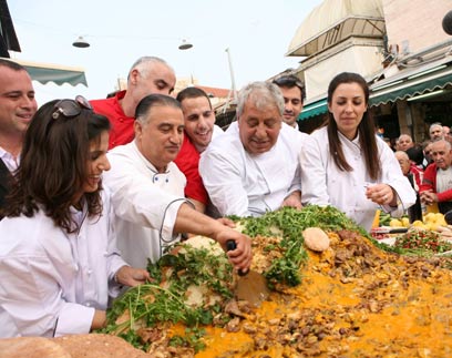 Early Monday morning Jerusalem's finest chefs from various restaurants in the capital met to start working on the special dish.