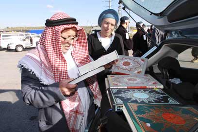 Abbushi examines donated Koran books (Photo: Ido Erez)