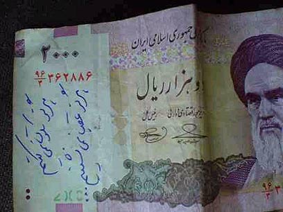 Expressions in support of moderate opposition leader Mir Hossein Mousavi, such as "Oh Hossein, Mirhossein", have occasionally been cropping up on the Islamic Republic's banknotes since its disputed election in June.