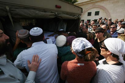 The coffin of Major Eliraz Peretz was brought to the Darchei Noam Synagogue in Givat Zeev on Monday. Dozens of residents and friends surrounded Peretz's coffin to pay their last respects. Thousands then joined the funeral procession at Mount Herzl in Jerusalem.