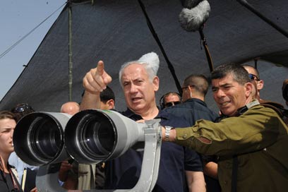 Netanyahu and Ashkenazi during drill (Photo: Amos Ben-Gershom, GPO)