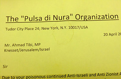 The letter, which was sent from a New York-based group by the name of "The Pulsa Di Nura Organization", said the Arab MK would soon meet his death. The letter, which was written in English said, "You have 180 days to live." It added that his death would be "sudden" and "accompanied by terrible suffering and agony."