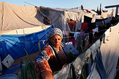 Wafa Awaja collects her family's laundry. 'No place to go' (Photo: AP)
