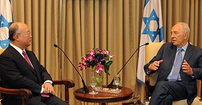 President Shimon Peres on Wednesday met with International Atomic Energy Agency chief Yukiya Amano, who is currently visiting Israel. According to a statement issued by the President's Residence, the two discussed political developments in the Middle East and stricter control of Iran's nuclear control in their meeting.