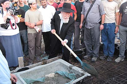 Some 200 settlers were present at the scene while Rabbi Dov Lior laid down the foundations for a new structure.