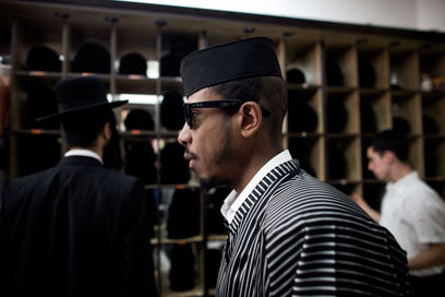 Shyne, 32, has swapped his hip-hop attire of oversized basketball jerseys and diamond studded teeth with the traditional black suit and white knee-high stockings favored by the Belz Hassidic sect. He wears a black skullcap over his shaven head, but in a reminder of his former life, he still wears stylish black Ray Ban sunglasses.