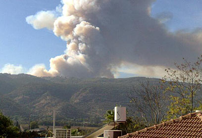 The blaze broke out around 11 am, and 15 firefighting teams were said to battling it "The wind is confusing the firefighters and making it very difficult for them," Reshef Hezi Levy, their spokesman, told Ynet.