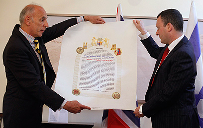 Horton (L) and Ambassador Gould with Ketubah (Photo: Reuters)