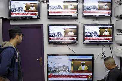 Palestinians watch coverage in Jenin (Photo: AP)