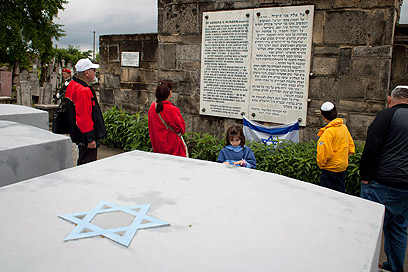 Jewish community members look at memorial stone (Photo: AFP)