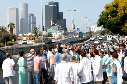 Doctors at Tel Aviv Sourasky Medical Center staged an organized walkout, and began marching towards the Israel Medical Association building in Tel Aviv.