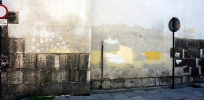 Wall with yellow erasures, Krakow Jewish Quarter (Photo: Danielle Fischer)