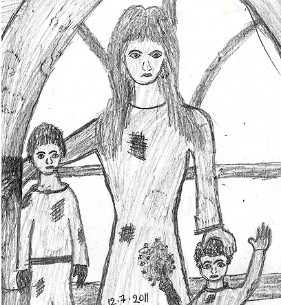 Another member of the group added that Salah is interested in Arab world affairs. "He drew a dove tied with a chain behind a window while over doves fly in the sky above, and I think he meant to say that Al-Aqsa Mosque is in danger but that the Arab world doesn't think of it as something of importance. The sinking ship indicates that someday the flotilla will reach the Gaza shores."