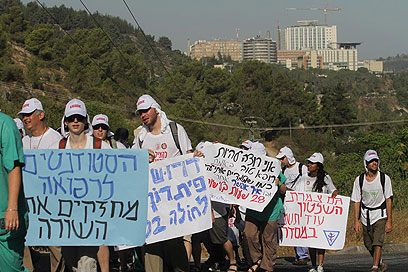 Eidelman, who has been on a hunger strike for the past week, addressed last week's march from Ramat Gan to Jerusalem, saying that "We entered Jerusalem carrying a stretcher bearing the dying public health system. The prime minister can and must shoulder the burden of the stretcher."