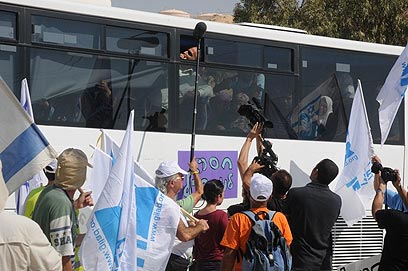 Protesters block Palestinian visitors' bus (Photo: Herzl Yosef)
