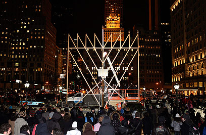 During Hanukkah, the Chabad-Lubavitch Jewish outreach organization sponsors the lighting of a massive menorah, 32 feet tall, on Fifth Avenue and 59th Street near Central Park, December 20-27. Candles are lit at 5:30 pm, except for the Sabbath, with a 3:30 pm lighting December 23 and 8:30 pm December 24.