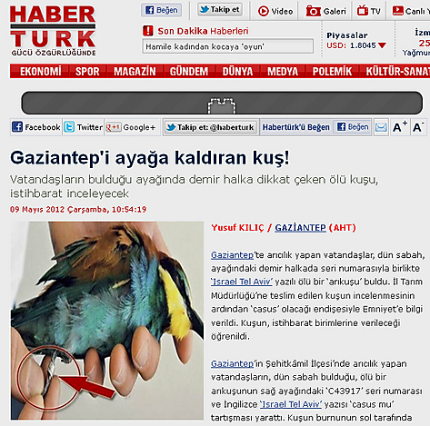 News of the "spy bird" spread quickly within Turkey's ornithological community, and Israeli ornithologists soon got word of it as well.