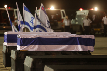 Victims caskets at BG Airports (Photo: Ohad Zwigenberg)