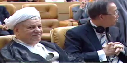 UN Secretary-General Ban Ki-moon, who is attending the summit, did not protest in any way when Khamenei referred to Israeli leaders as "bloodthirsty wolves."